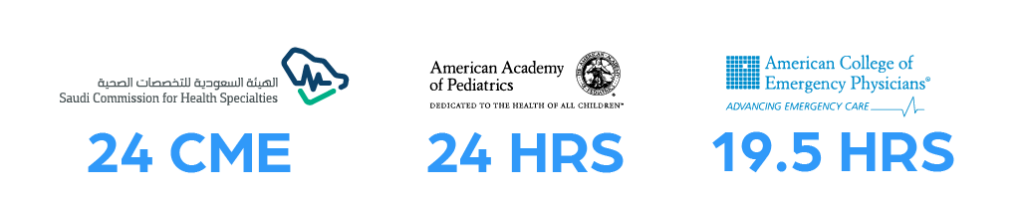 * This activity has been planned and implemented in accordance with the accreditation requirements and policies of the Accreditation Council for Continuing Medical Education (ACCME) through the joint providership of the American College of Emergency Physicians and Saudi Pediatric Emergency Medicine Society. The American College of Emergency Physicians is accredited by the ACCME to provide continuing medical education for physicians.